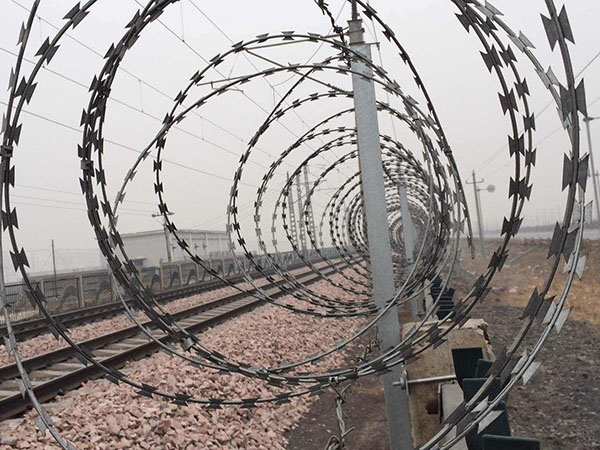 刀片刺繩(razor barbed wire)也稱為刀片刺絲、刀片刺網,是一種新型防護網。刀片刺繩具有美觀、經濟實用、防阻效果好、施工便利等優異特點,目前,刀片刺繩已被廣泛應用于許多國家的工礦企業、園林公寓、邊防哨所、軍事領域、監獄、看守所、政府建筑物和其他國家的安全設施。
