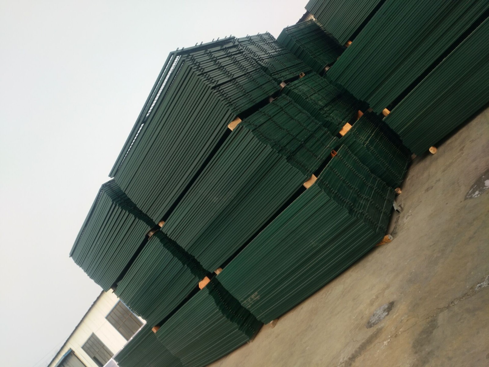3.5金(jin)屬(shu)網(wang)片及柵欄門的(de)網(wang)片成形后應整體鍍(du)鋅并(bing)進行熱浸塑(su)(或(huo)噴(pen)塑(su))處(chu)理,鍍(du)鋅量270g/m2,浸塑(su)厚度0.8mm~1.2mm,顏色選用墨綠(lv)色。涂層應均勻(yun),顏色一致,表面光滑,無流柱(zhu),滴瘤、粉泡(pao)、漏(lou)鐵(tie)等缺陷。