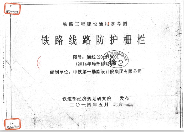 通線(2012)8001 鐵路線路防護柵欄(2014局部修改版)免費下載免費提供