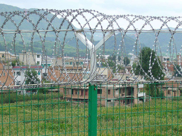 刀片刺繩(razor barbed wire)也稱為刀片刺絲、刀片刺網,是一種新型防護網。刀片刺繩具有美觀、經濟實用、防阻效果好、施工便利等優異特點,目前,刀片刺繩已被廣泛應用于許多國家的工礦企業、園林公寓、邊防哨所、軍事領域、監獄、看守所、政府建筑物和其他國家的安全設施。