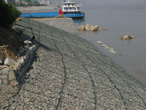賓格網(石籠、石籠網箱、格賓網、生態網箱、格賓網箱、六角網箱、固濱網)由各種網孔規格的格賓網片按照ASTM A975-97規范組裝而成。工程現場填充石料組裝形成柔性的、透水的、整體的支擋結構,用于生態防護工程。網絲采用高鍍鋅鋼絲或者10%鋁鋅合金鋼絲,如果環境條件比較惡劣,污染比較嚴重,可以在鋼絲的表面涂塑(PVC),以增強網絲的抗腐蝕性能。